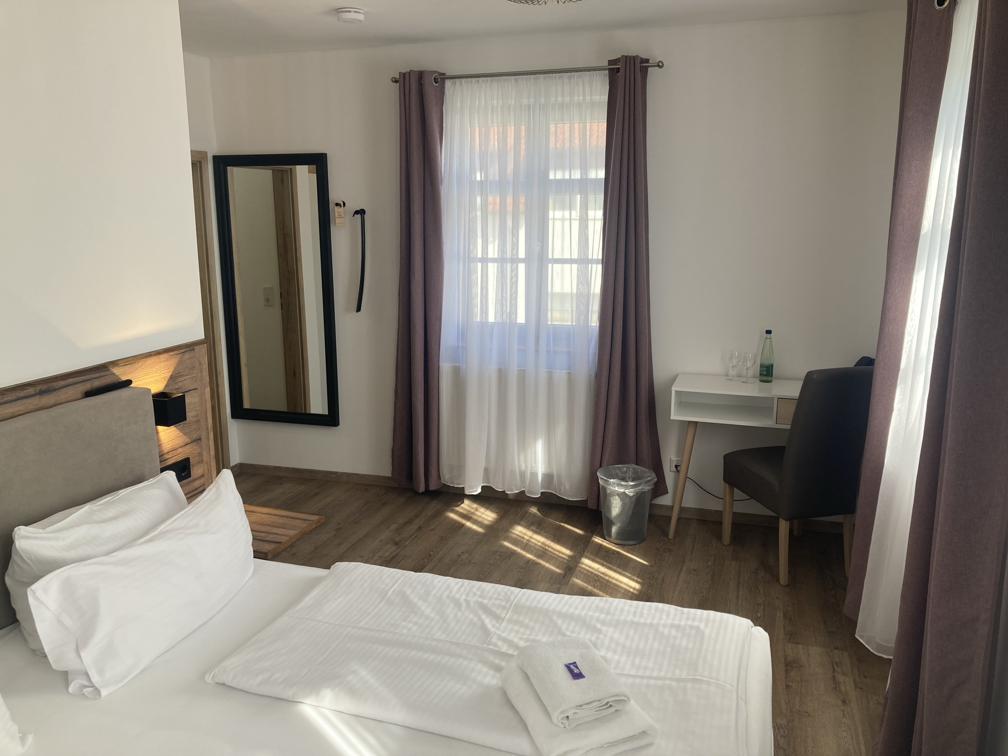Unsere Doppelzimmer der Comfort-Kategorie bieten Ihnen ein spürbares Plus an Platz und Bequemlichkeit, das weit über den Standard hinausgeht. Diese Zimmer sind die ideale Wahl für Paare, die ein romantisches Wochenende verbringen möchten, oder für Reisende, die bei einem längeren Aufenthalt Wert auf ein luftiges und besonders komfortables Wohngefühl legen. Das Interieur besticht durch eine gelungene Kombination aus zeitloser Eleganz und modernen Akzenten, wobei hochwertige Materialien und eine warme Farbgebung eine Atmosphäre von exklusivem Wohlbefinden schaffen.