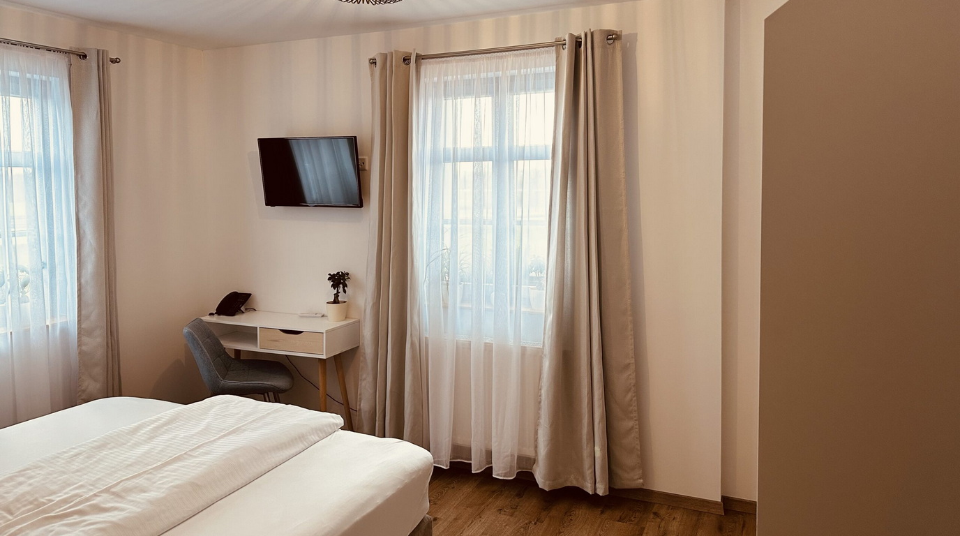 Unsere Einzelzimmer "Classic bieten Ihnen einen stilvollen Rückzugsort, der speziell auf die Bedürfnisse von Geschäftsreisenden und Gästen bei Kurzaufenthalten zugeschnitten ist. Das Interieur besticht durch ein klassisches Design, das mit warmen Holztönen und harmonisch abgestimmten Textilien eine Atmosphäre von Ruhe und Geborgenheit schafft.